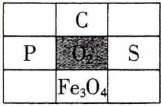 2. (2024秋江门期末)悦悦设计的"化学消消乐"游戏如图,点击灰色格,能与该格中物质发生反应的相邻物质就一起消失。点击图中灰色格后剩余的物质是(