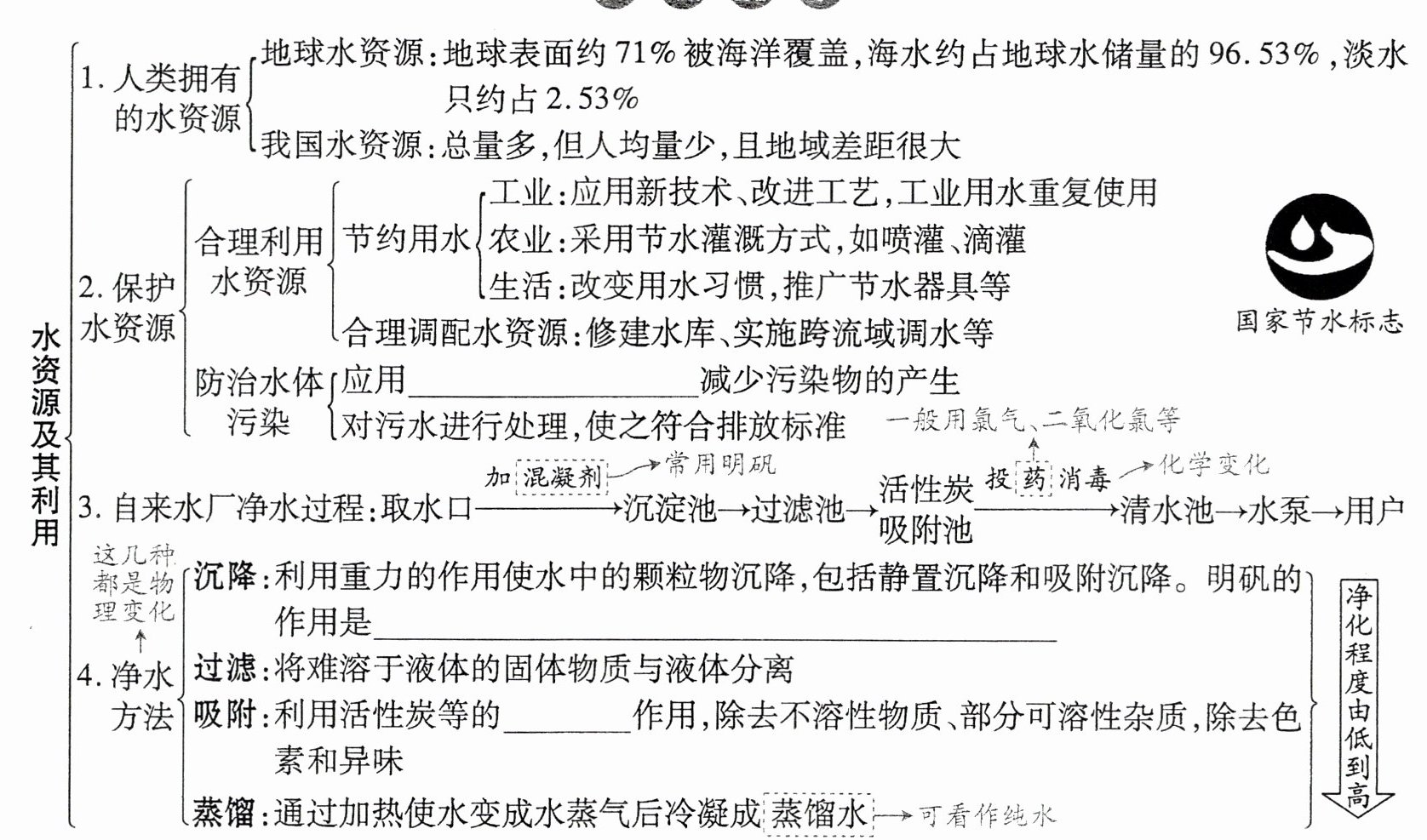 (2)水经过沉淀池、过滤池后,可除去其中的