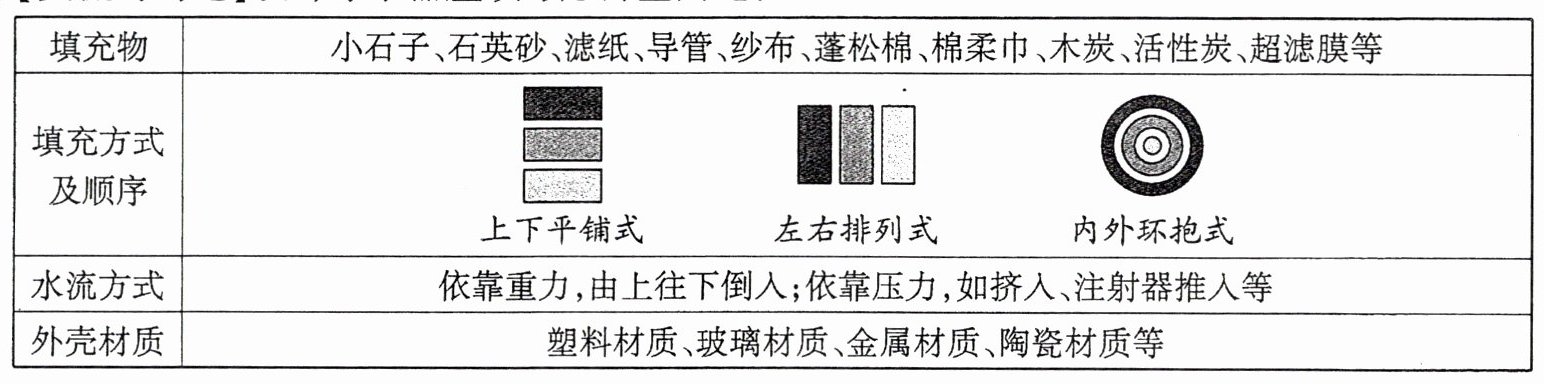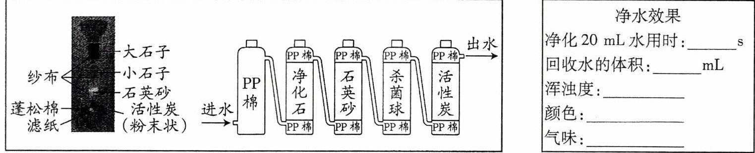 6. 利用实验室和生活中的材料,设计并制作便携式净水器。