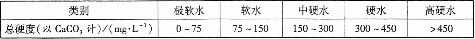 (2)同学们了解到国家有关水的硬度的标准如下,则该自来水属于