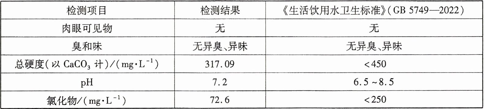 4. 水厂检验员取该地自来水厂净化后的自来水水样检测,结果如表: