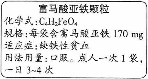 10.(教材素材改编)富马酸亚铁是常用的补铁剂,某品牌富马酸亚铁颗粒的标签如图。