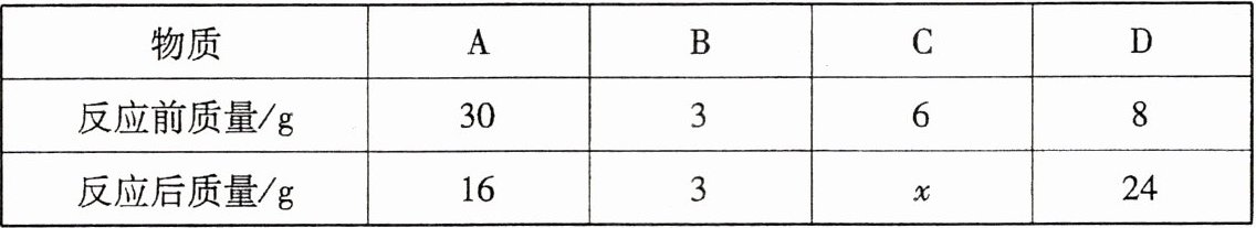 C 【解析】A.根据反应前后物质的总质量不变,x=8+20+