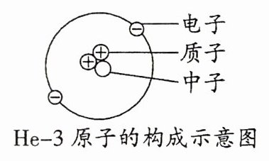月壤中吸附着大量的$He-3$原子(“3”表示质量数,质量数= 质子数+中子数),其构成示意图如图。$He-3$具有巨大的能源价值,每百吨$He-3$核聚变所释放出的能量相当于人类一年消耗的能量总和。