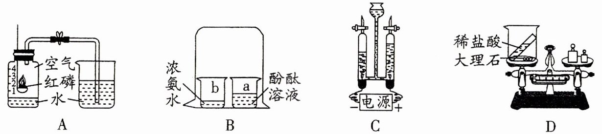 C.玻璃管内分别生成$H_2和O_2$,说明水由氢、氧元素组成