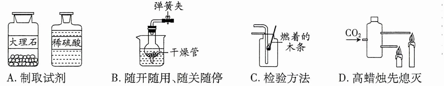 。用装置C制取二氧化碳时,使反应停止的操作是关闭弹簧夹