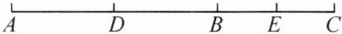 (2)设BD=xcm.因为BD=$\frac{1}{4}$AB=$\frac{1}{3}$CD,所以AB=4BD=4xcm,CD=3BD=3xcm.所以BC=CD−BD=3x−x=2xcm.所以AC=AB+BC=4x+2x =6xcm.因为E为线段AB的中点,所以BE=$\frac{1}{2}$AB=$\frac{1}{2}$×4x=2xcm.所以EC=BE+BC=2x+2x=4xcm.又因为EC=12cm,所以4x=12,解得x=3.所以AC=6x=6×3=18(cm).