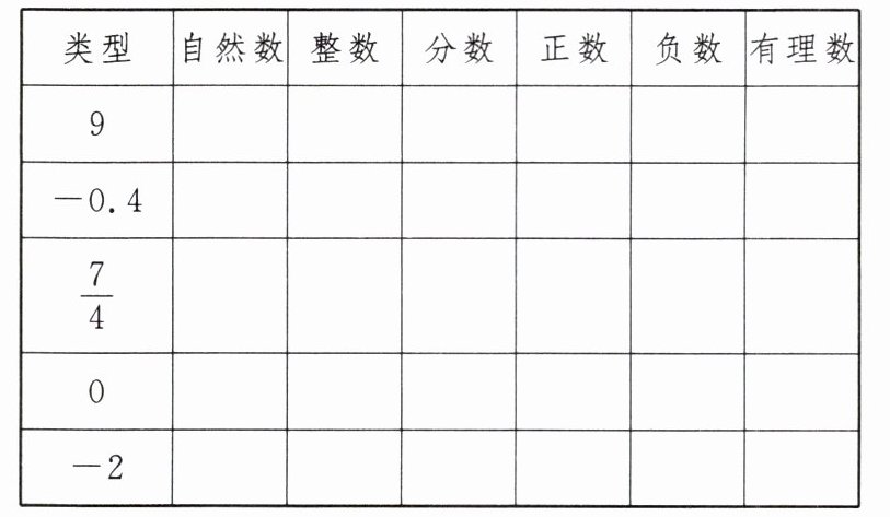 |类型|自然数|整数|分数|正数|负数|有理数|