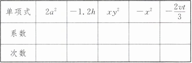 5. 新考向 开放性问题 小马虎在抄写一个五次单项式$-\frac{2}{3}xy^{□}z^{□}$时,误把字母$y,z$的指数给漏掉了,则原单项式可能是