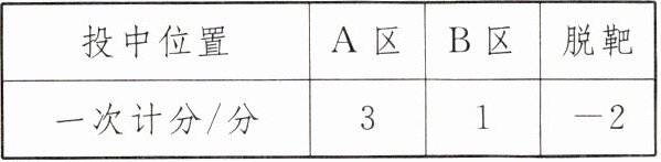 (2)第二局,珍珍投中 A 区 $ k $ 次、B 区 3 次,其余全部脱靶. 若本局得分比第一局提高了 13 分,求 $ k $ 的值.