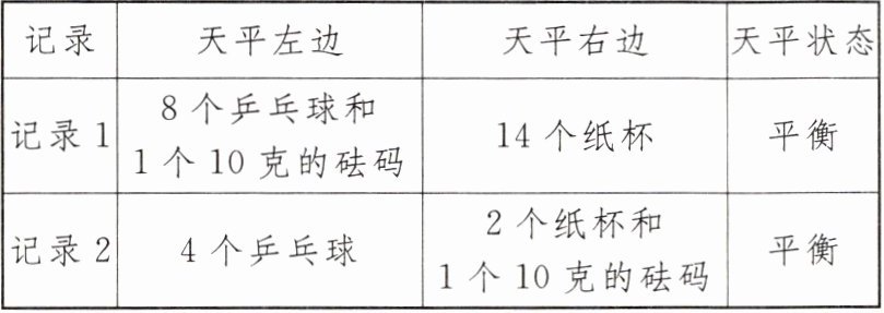 【问题情境】在综合实践课上,老师让同学们利用天平和一些物品探究等式的基本性质,现有一架天平和一个10克的砝码,如何称出一个乒乓球和一个纸杯的质量?