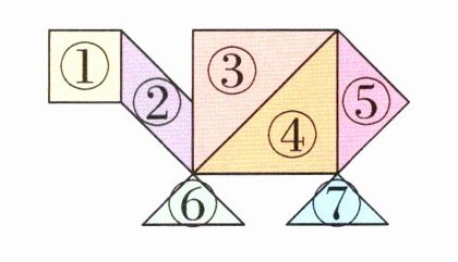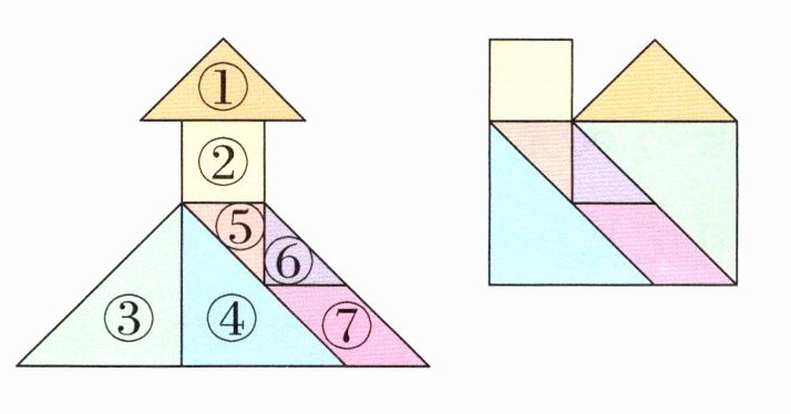 5. 明明用右面的七巧板拼出了下面的图案,你知道他是怎么拼的吗?在图上标出编号。
