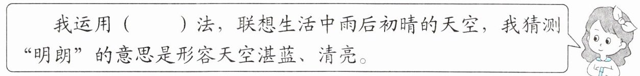 我运用( )法,联想生活中雨后初晴的天空,我猜测“明朗”的意思是形容天空湛蓝、清亮。