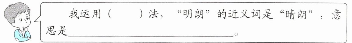 我运用( )法,“明朗”的近义词是“晴朗”,意思是______。