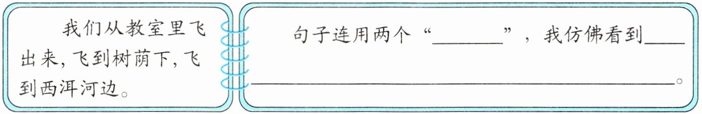 3. 用有新鲜感的词语写场景。下课后,小动物们赶来看热闹,我仿佛听见 ,仿佛看见 。