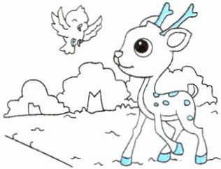六 新思维 创新运用 根据插图,预测一下图中小鸟和小鹿的对话。