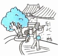 四【诗境探秘】来到绘画展览区,先将图画上的古诗补充完整,再完成练习。