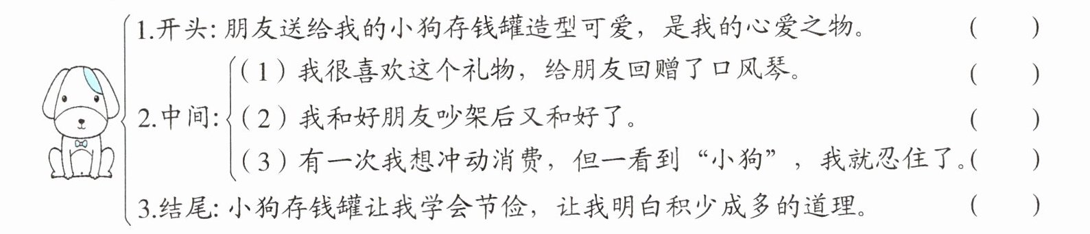 下面是木木列出的这次习作的思路图,请你判断哪些材料是不必要的,画“×”。