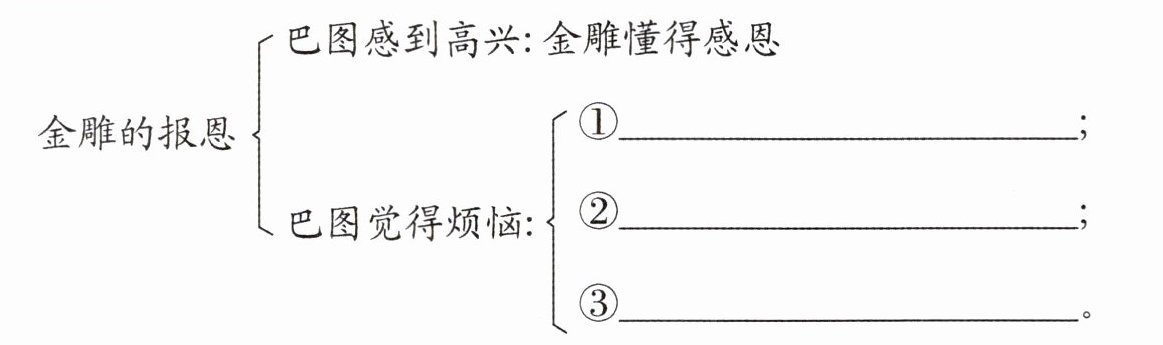 (2) 金雕的报恩是小说的重点部分,请你完成思维导图的梳理。