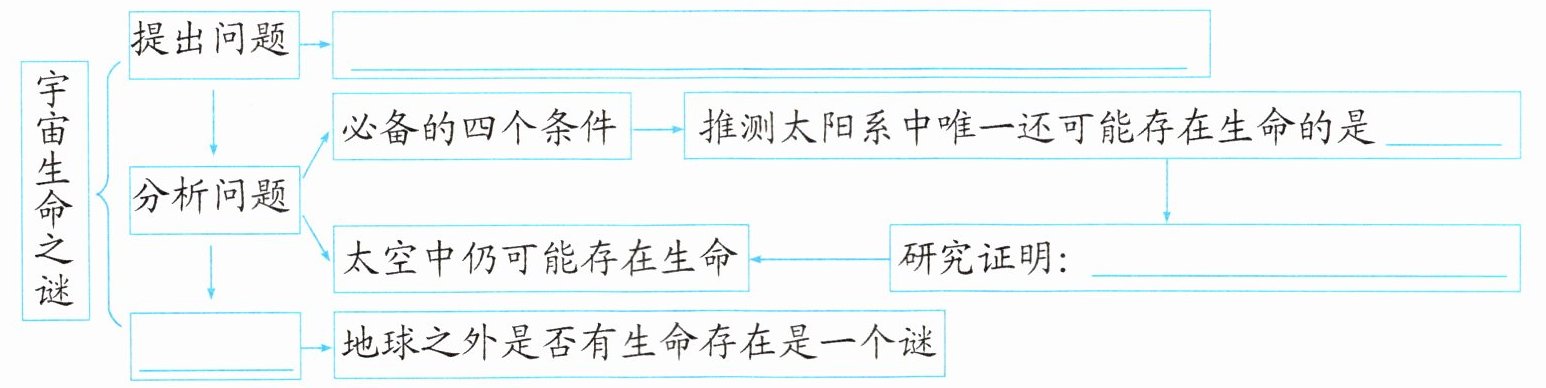 二 补全《宇宙生命之谜》的思维导图,发布在论坛中,帮助同学们加深对课文内容的理解。