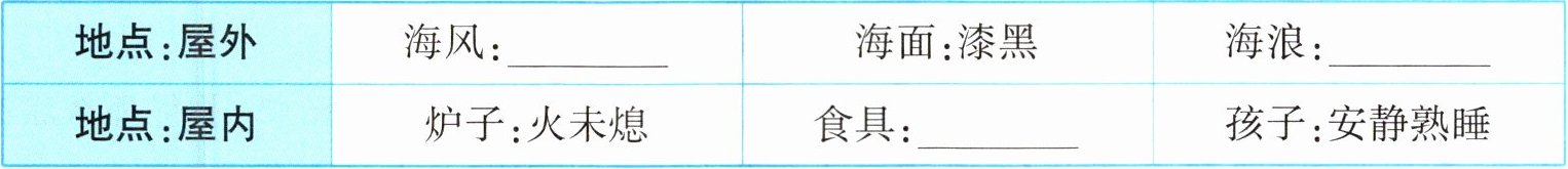 | 地点:屋外 | 海风:______ | 海面:漆黑 | 海浪:______ |