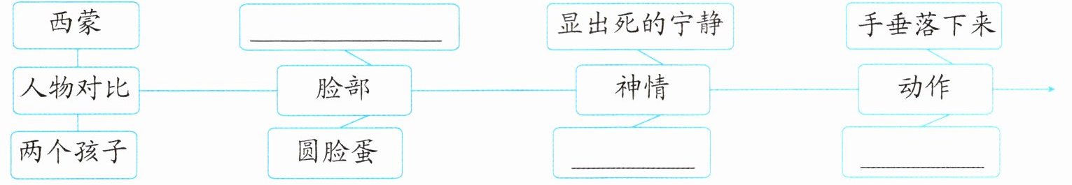 两个孩子 —— 脸部:圆脸蛋 —— 神情:______ —— 动作:______