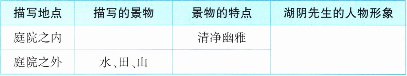 |描写地点|描写的景物|景物的特点|湖阴先生的人物形象|