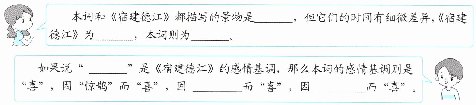 3. 对比联读,深入思考:联读本词与《宿建德江》,补全乔乔和木木的讨论。