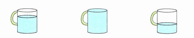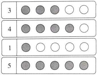 5. 有5个大小相同且都装满水的杯子,喝去一些后如下图,请按喝的从多到少从1开始编号。