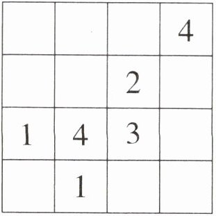 7. 在下面的方格中填数,使每个横行、每个竖行都有1,2,3,4这四个数,并且每个数在每个横行、每个竖行都只出现一次。