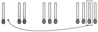 提示:题图中的火柴棒间隔摆放,摆成了1,2,3,4,想到移动一根火柴棒后摆放的位置改变,能够将原来的4拆开,形成1和2,尝试将从右边起第二根先拿走,从右到左分别是1,2,3,再将拿走的火柴棒放到原来1和2中间,组成4,这样图形就变成了4,3,2,1。