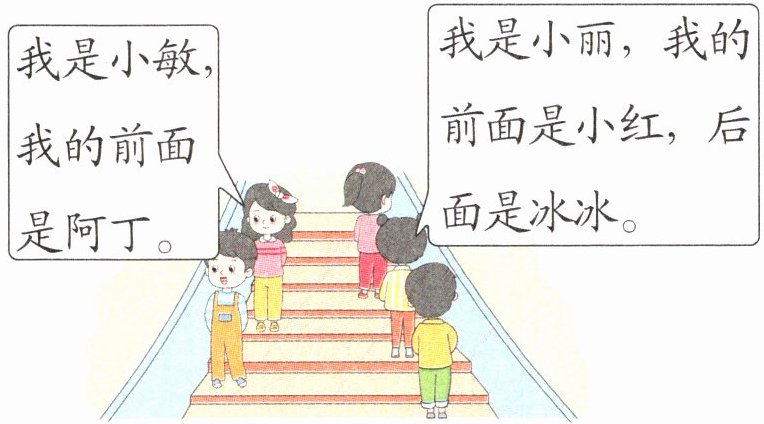 提示:小丽的前面是小红,后面是冰冰,所以小丽走在小红和冰冰的中间。