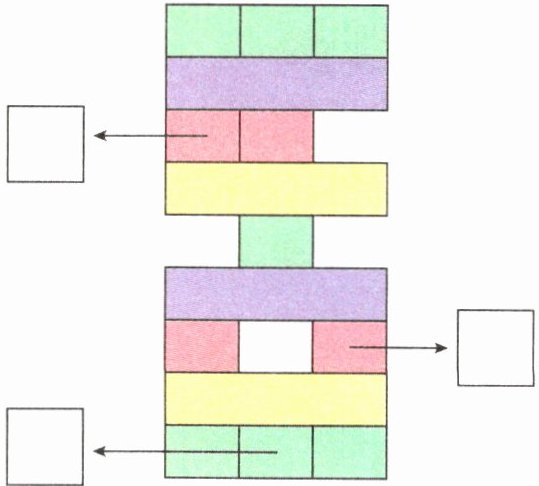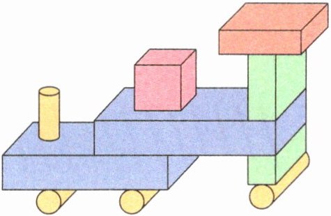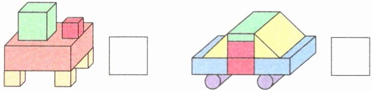 2. 下面组合图形中每种形状的积木各用了多少块?圈一圈。