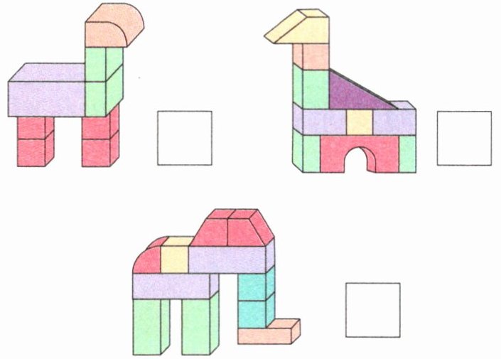 3. 下面的“小动物”中,哪个用的正方体最多?画“√”。