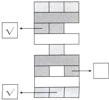 5.(名校期末真题)你玩过平衡塔吗?如图所示的平衡塔,抽掉哪几块积木,平衡塔不会倒?画“√”。
