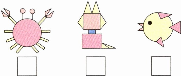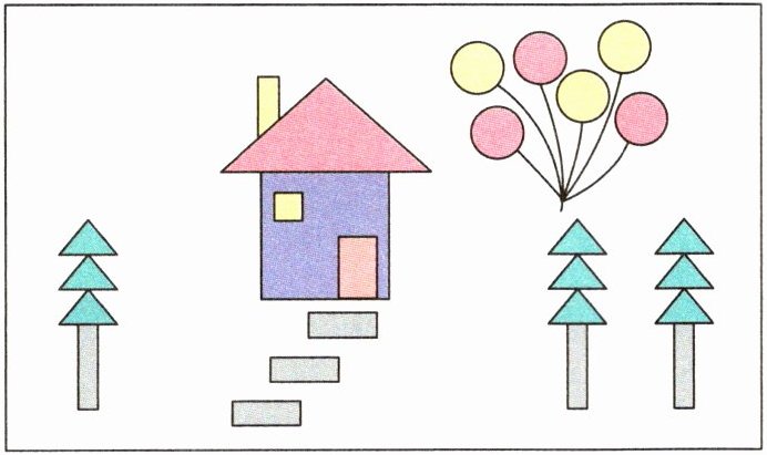 这幅画中用了(1 2 3)个正方形,(2 4 6)个圆,(8 9 10)个三角形和(6 7 8)个长方形。