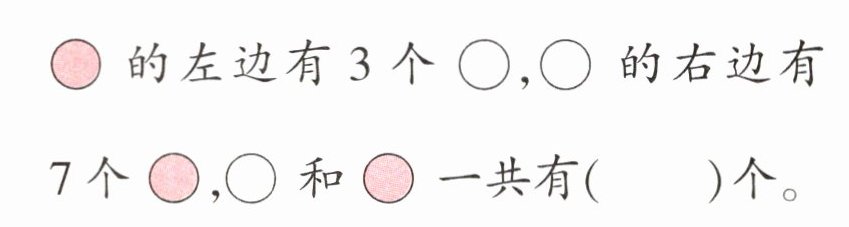 提示:●的左边有3个○,●的左边已经有1个○了,所以还要画2个○。○的右边有7个●,○的右边已经有1个●了,所以还要再画6个●,数一数,○和●一共有10个。