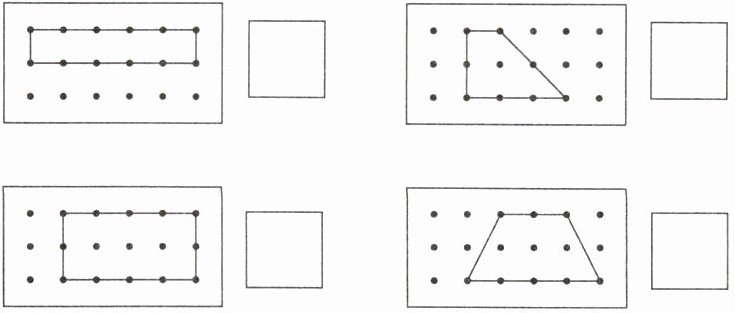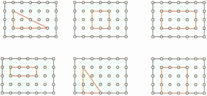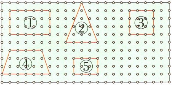 1. 小轩在钉子板上围出了几块“草地”。