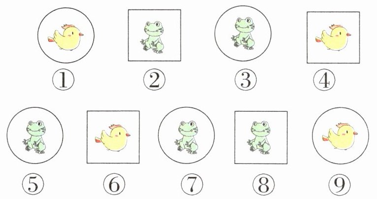 方法一:①④⑥⑨ ②③⑤⑦⑧ 方法二:①③⑤⑦⑨ ②④⑥⑧ 提示:分别按照卡片上的动物和卡片的形状分一分。