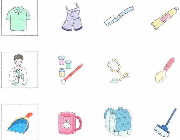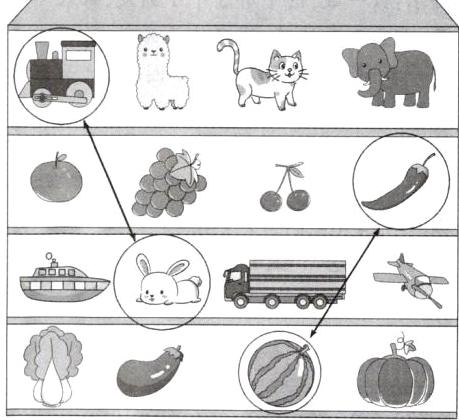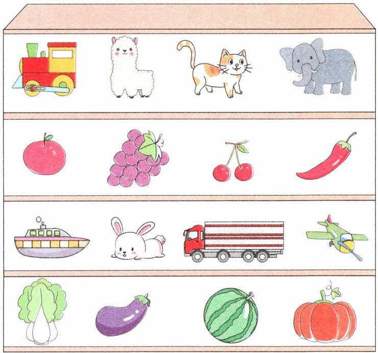 3. 怎样交换才能让同一类物体在柜子同一层?画一画。