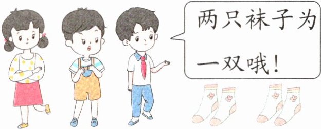 提示:数一数,图中有3个小朋友,每人一双袜子,需要3双袜子,两只袜子为一双,可以2只画一个圈,袜子可以画2个圈,也就是有2双袜子,不够每人分一双袜子。