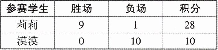 解:因为漠漠胜 0 场,负 10 场,积分为 10 分.