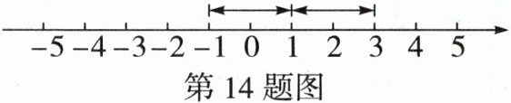 14. (中考新考法·阅读理解题)我们知道 $ |x| $表示 x 在数轴上对应的点到原点的距离,$ |x - a| $表示数 x 与 a 在数轴上对应的点之间的距离。例:$ |x - 1| = 2 $表示数 x 与 1 在数轴上表示的点的距离是 2 个单位长度,如图所示,即可得出 x 的值为 -1 或 3。
