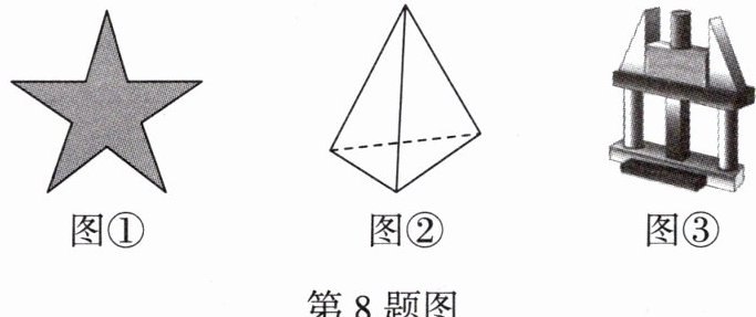 8. (教材练习第2题改编)指出下列图形是立体图形还是平面图形,并写出其中立体图形的表面包含哪些平面图形.