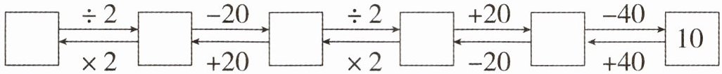 最后一个运算“$-40$”,其逆运算是“$+40$”,所以$10 + 40 = 50$;