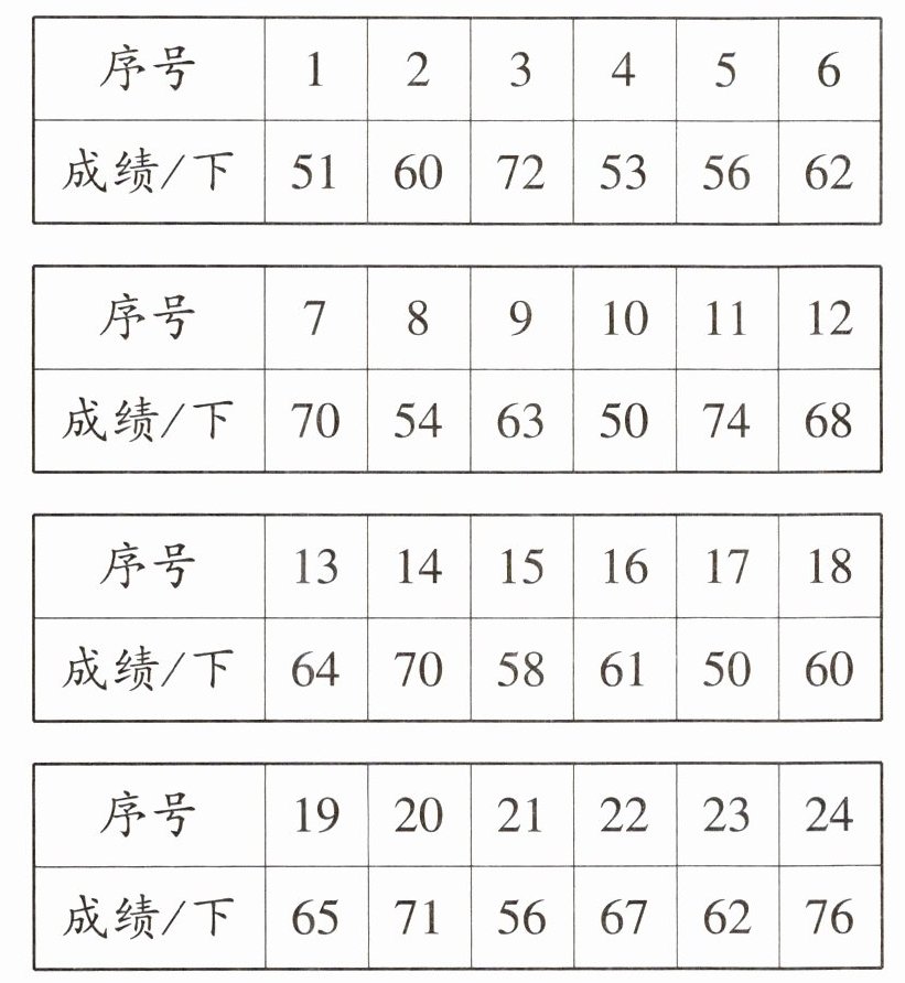 1. 彤彤收集了自己班女生 30 秒跳绳的成绩,如下表: