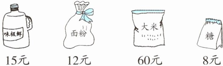 (1)买3袋面粉和1桶味极鲜,应付多少元?