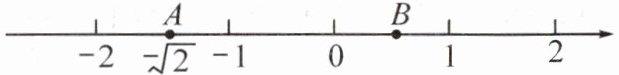 3. 如图,一只蚂蚁从点 A 沿数轴向右爬了 2 个单位长度到达点 B,点 A 表示$-\sqrt{2}$. 设点 B 所表示的数为 m.