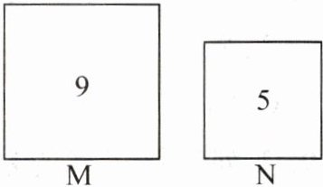 1. 如图,正方形 M 的边长为 m,正方形 N 的边长为 n. 若两个正方形的面积分别为 9 和 5,则下列关于 m 和 n 的说法,正确的是 (