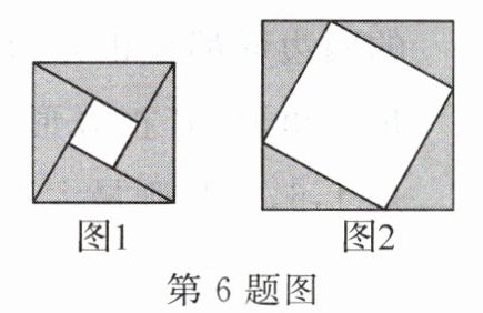 6. (2024·眉山)图 1 是北京国际数学家大会的会标,它取材于我国古代数学家赵爽的“弦图”,由四个全等的直角三角形拼成。若图 1 中大正方形的面积为 24,小正方形的面积为 4,现将这四个直角三角形拼成图 2,则图 2 中大正方形的面积为(